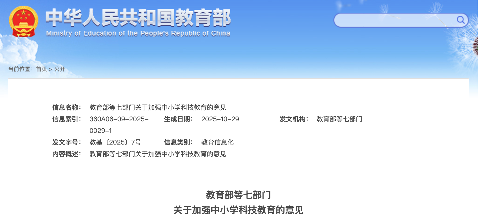 11月12日,教育部召开“教育大会一年间·教改进行时”新闻发布会,介绍教育部等七部门《关于加强中小学科技教育的意见》有关情况。
